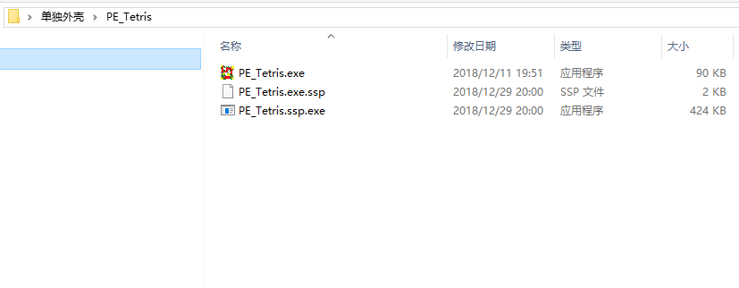 接下来,我们需要将原始的程序进行备份或移除,再将被加壳程序(这里是PE_Tetris.ssp.exe)改名为原始程序名PE_Tetris.exe。