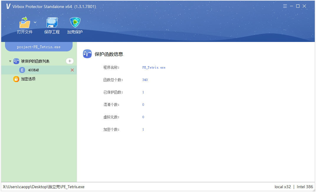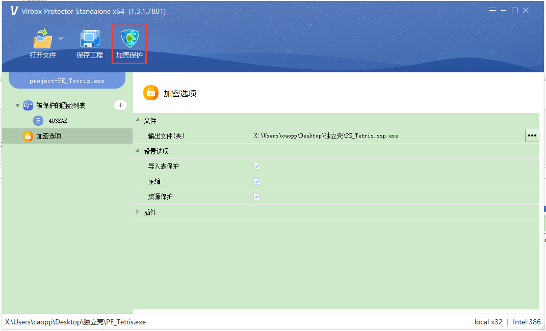启动Virbox Protector Standalone,加壳工具主界面如下: